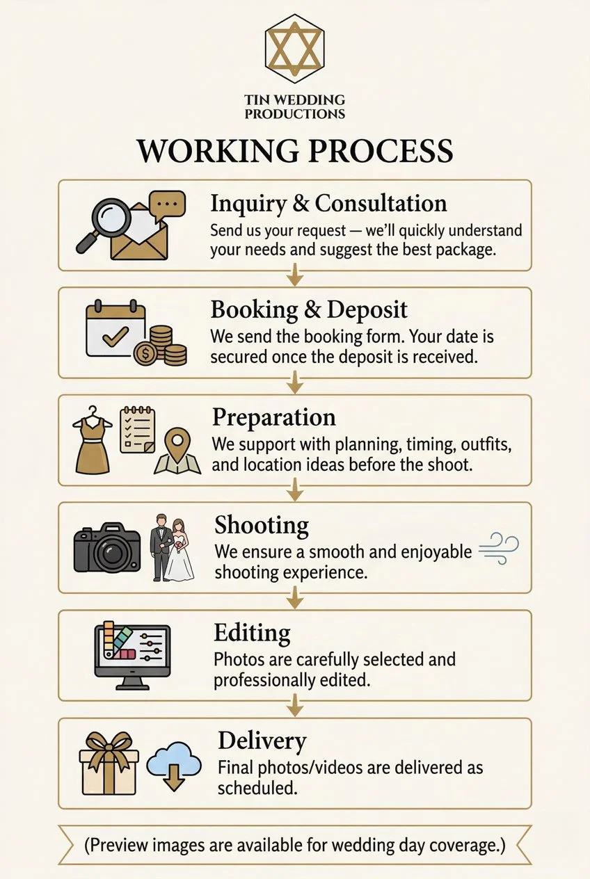 We’ve worked with couples from many countries and are familiar with different styles, cultures, and expectations.Friendly & Professional Team